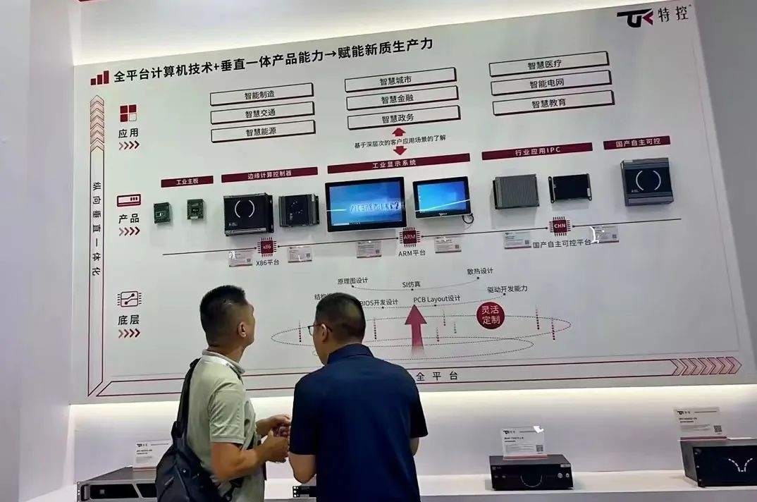 此次工博會,特控也緊扣“工業(yè)聚能 新質(zhì)領航”的主題,通過橫向的全場景計算機技術解決方案與縱向的垂直一體化服務賦能新質(zhì)生產(chǎn)力。橫向方面,根據(jù)客戶的應用場景,基于全平臺的計算機技術:X86架構(gòu)、ARM架構(gòu)、國產(chǎn)化平臺進行產(chǎn)品研發(fā);縱向方面,擁有從板卡到整機系統(tǒng)的完全自主研發(fā)和靈活定制能力,包括原理圖設計、PCB Layout設計、散熱設計、結(jié)構(gòu)設計、SI仿真、BIOS開發(fā)設計和驅(qū)動開發(fā)能力等,為客戶產(chǎn)品質(zhì)量和品牌提供保障,幫助客戶在最短時間把產(chǎn)品推向市場。