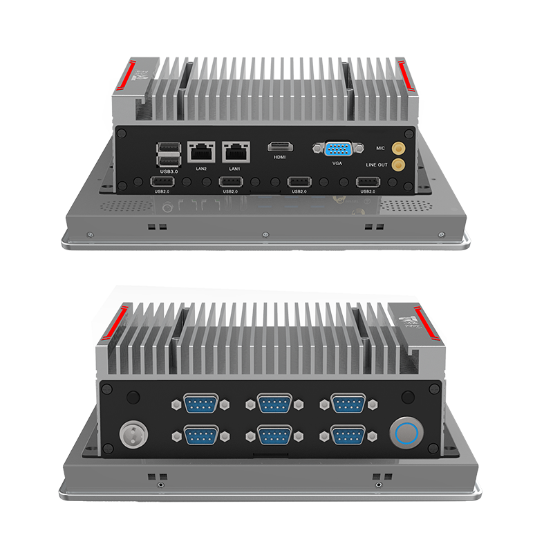 外觀設(shè)計:鋁合金一體成型,工藝精細,科技時尚低功耗:英特爾®賽揚®J1900 板載處理器,TDP 10W穩(wěn)定可靠:純工業(yè)無風(fēng)扇設(shè)計,大面積鋁鰭散熱,箱體材質(zhì)可抗接觸式6Kv強電磁干擾;液晶屏接觸處加強型密封膠圈設(shè)計,面板防水防撞擊接口豐富:2*LAN(Intel),6*COM,1*USB3.0,5*USB2.0,1*HDMI,1*VGA,1*MIC In, 1*Line